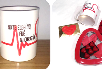 A mi me toco una Catalana graciosa que resulto tener algo de Murciana, y como nosotros nos reconocemos allá donde vayamos, nos cálamos enseguida, le regale una taza moniiisima,diseñada especialmente para la ocasión por HiloyVinilo, con una frase que les propuse y un espejito que diseñé e hicieron realidad los chicos de Cebra Negra; también busque en mi baúl de los recuerdos y encontré unos globos de corazón que usamos en mi boda...unos imanes preciosos que encontré en Tiger, junto con una cajita y un colgante de corazón que fue mi DIY, lo siento pero mis manazas y mi poca paciencia no dan para más.