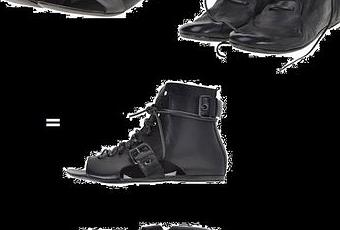 La bota militar más famosa de estos tiempos se muta en sandalia de la mano de Simons y no es casualidad, es bien conocida la fijación de este por la ropa masculina de uniforme y su afición a la música gótico-punk.