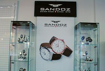 Sandoz fue una familia tradicional de Suiza de relojeros. En 1697 David Sandoz creo el reloj de la Iglesia La-Chaux-de-Fonds en Neuchatel. Jacques Sandoz en 1751 creo el reloj de bolsillo "Orignon", diseñado con una caja de latón, esfera de plata y ornamentado con Flor de Lys. En 1855 la familia Sandoz se especializo en los relojes extraplanos y cronómetros. / Sandozwas a traditional familyofSwisswatchmakers.In 1697DavidSandozcreated the clock of theChurchLa-Chaux-de-Fonds in Neuchatel. In 1751, JacquesSandozcreated thepocket watch"Orignon" designed with abrass case, silver dialandflower Lys decorated. In 1855theSandozfamilyhas specializedin slimline watchesand chronometers