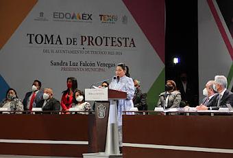 En un clima de paz y cordialidad, el gobernador mexiquense tomó la protesta a Sandra Luz Falcón Venegas, como presidenta municipal constitucional de Texcoco para el periodo 2011-2024, quien a su vez tomó protesta al cabildo que la acompañará en la próxima administración municipal.