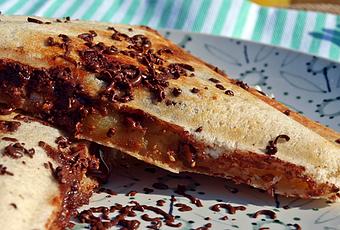 Deshacer la ricotta batiendola con la miel, triturar el chocolate, pelar y trocear el plátano en rodajas-Encendemos la sandwichera y colocar una rebanada extender la ricotta por encima, después añadimos rodajas de plátano y esparcer el chocolate. Colocar la segunda tapa y cerrar la sandwichera dejar unos minutos hasta que se tueste.