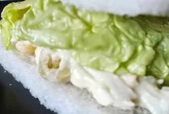 - Se pone una cantidad generosa de ensaladilla en la rebanada de pan de molde.
