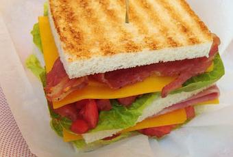 Un buen pan de molde, queso Cheddar, la panceta curada natural, el jamón de York natural (no el de fiambre), el tomate de huerta, la lechuga fresca y una mayonesa suave...