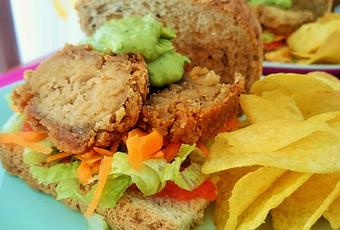 ♥ 3-4 trozos de VFC pollo frito vegano Vegesan (Ref; 9366/V)♥ 4 rebanadas de pan multicereales♥ 1 aguacate♥ 2 dientes de ajo♥ 2 cdas de zumo de limón♥ 2 tomates♥ 1 cdta de orégano♥ 2-3 hojas de lechuga♥ media zanahoria rallada♥ aceite de oliva♥ sal
