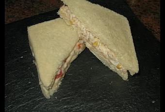 SÁNDWICH DE ATÚN Y MAÍZ- ½ lata de maíz.- 1 lata de atún.- 2 cucharada de queso cremaEscurrimos bien la lata de atún y de maíz, las echamos en un cuenco junto al queso crema, le damos varias vueltas y untamos la mezcla en el pan.SÁNDWICH DE CHAMPIÑONES, PIQUILLO Y ANCHOAS- ½ lata de champiñones laminados.- ½ lata de pimiento de piquillo.- 2 anchoas.- 4 cucharadas de mayonesa.Picamos los champiñones, los pimientos y las anchoas, les añadimos las cuatro cucharadas de mayonesa, se unta en el pan y listo para comer.SÁNDWICH DE QUESO CON NUECES- 2 cucharadas soperas de queso crema.- 1 cucharada sopera de margarina.- 1 puñado de nueces.Se meten todos los ingredientes en un batidor, se baten y se untan en el pan. Todo dependerá de cómo os gusten de picadas las nueces.SÁNDWICH DE BACON CON HUEVO- 1 huevo cocido.- 3 lonchas de bacon.- 4 cucharadas soperas de mayonesa.Se cuece el huevo durante diez minutos se pela y se echa al vaso de una batidora. Mientras tanto freímos un poco el bacon, lo partimos en trozos y lo ponemos también en el vaso de la batidora, junto con las cuatro cucharadas de mayonesa. Se bate todo, se unta en los panes y listo para comer.