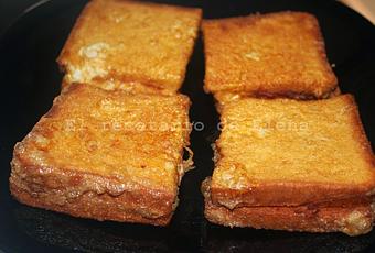 - En una sarten ponemos aceite bien caliente y a continuación freímos los sándwich hasta que queden dorados.