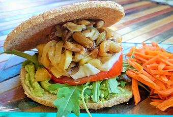 ♥ pan de sandwich (aquí Thins)♥ MozzaRisella u otro queso vegano♥ hojas de rúcula♥ mezcla de setas y champiñones
