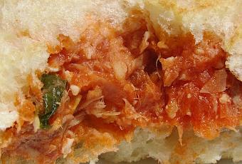 6- Mezclar bien con el huevo, lechuga y atún desmigado. Rellenar pan de molde, ser generosos eh? Y tostar en la sandwichera o en una sartén.