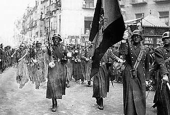 Tropas de la IV División Navarra desfilando por la Cartagena recién ocupada (31/03/1939)(Imagen: La represión Franquista en Cartagena 1939-1945. Pedro María Egea Bruno