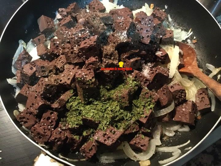 Dejamos pochar y cuando este transparente volcamos la sangre