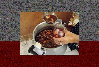 Para hacer esta bebida tan típica española y que a todos los visitantes que tenemos les encanta, necesitamos: 1 Litro de vino joven tinto. Yo suelo utilizar alguno de Vinos de Madrid o de La Mancha y que se conserve en botella. Aunque para preparar la Sangria no necesitamos un vino excelente por lo menos utilizar un vino más aceptable y con buen sabor a un precio muy asequible. Zumo de 2 naranjas 1 chorrito de vermut rojo 2 melocotones troceados y pelados 1/4 de vaso de azúcar cortezas de limón 1 rama de canela 1/2 litro de refresco de limón hielo abundante