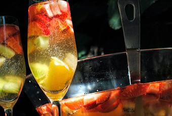 Vierte el contenido de las dos botellas de cava y los vasos de refresco de limón en el mismo bol donde echaste las frutas ya cortadas.