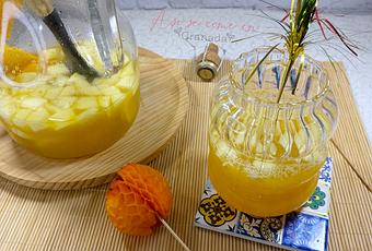 Esta "sangría", si puede llamarse así, es de los combinados mas frescos para el verano.Como se comercializa también el champán sin alcohol se puede sustituir por este si hay niños o si no se quiere tomar alcohol.El combinado fresco de estas frutas, en su mayoría cítricos, hacen de esta bebida que sea refrescante y deliciosa.