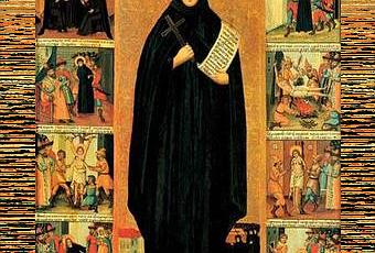 (En la imagen, icono ruso de Santa Febronia, ataviada, por anacronismo, como una monja ortodoxa y rodeada de las escenas de su vida y martirio).