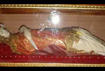 Imagen yacente que custodia las reliquias de Santa Teodora de Xalapa.