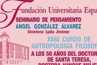 Continúa la programación del XXIII curso de Antropología Filosófica organizado por el Seminario de Pensamiento ‘Ángel González Álvarez’, de la Fundación Universitaria Española (FUE), dirigido por Lydia Jiménez. Este año, convocado con el título A los 50 años del doctorado de santa Teresa, doctora aunque mujer.