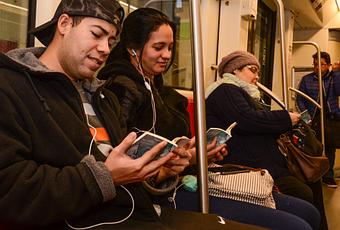 La primera de ellas se realizó en la estación Parque Almagro donde pequeñas estanterías con libros del certamen y un buzón para quienes quisieron dejar sus cuentos, esperaron a los pasajeros entre las 7:00 y 9:00 de la mañana de este martes 23 de Abril. Paralelamente, se activaron dos trenes del metro de la Línea 3 cargados con 400 libros con los 100 mejores cuentos de la versión anterior de Santiago en 100 Palabras. Los ejemplares se repartieron de manera gratuita para los primeros pasajeros que llegaron a la estación Ñuñoa.