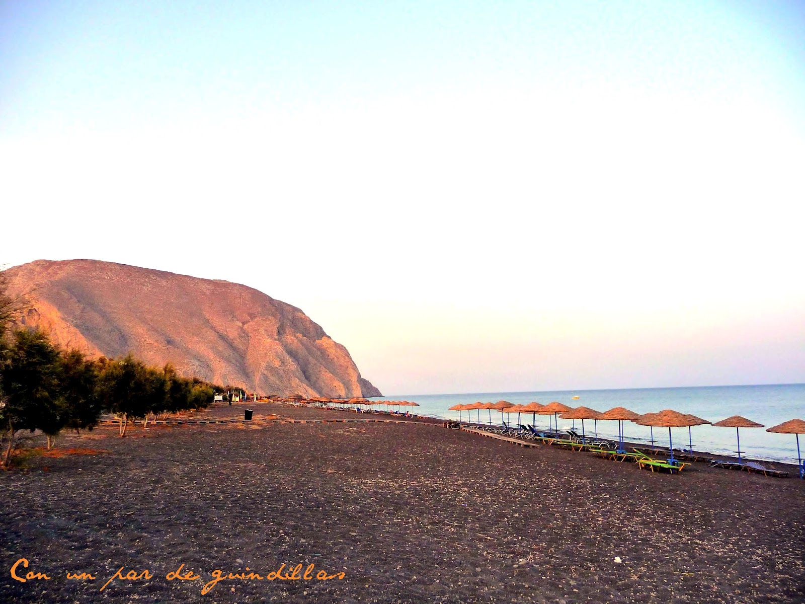 Hacia las 6 y media de la mañana embarcamos en un enorme ferry que nos llevaría, tras una travesía de 8 horas, hasta la hermosa Santorini. Y aquí surgió el primer problema, los billetes. Como es lógico, estaban escrito en griego, quiero decir, con letras griegas, vamos, que no teníamos ni puñetera idea de que tipo de billete teníamos. Así que nos colocamos en la cubierta de popa, en un rincón dónde poder sentarnos e incluso tumbarnos para intentar dormir un poco… A las 8:00 horas el barco soltó amarras, la mañana era preciosa, llena de luz. En los muelles cientos de mercantes y de todo tipo de embarcaciones, mostraban la naturaleza del pueblo griego, que siempre ha mirado al mar y a las tierras que hay más allá, a lugares que explorar y conocer. Digamos que las primeras horas fueron maravillosas, disfrutábamos de la brisa marina y el sol acariciaba nuestros rostros… pero… empezaba a acariciar demasiado. Teníamos un problema, en la cubierta apenas había sombra, dentro, el espacio estaba abarrotado por cientos de familias griegas que ocupaban todos los rincones posibles, que no se cortaban en desplegar manteles y viandas que compartían ruidosamente (y luego dicen que los españoles hablamos alto, mete a dos griegos en un lugar abarrotado y sólo los oirás a ellos), especialmente pepinos y litros y litros de café frappé. El Ferry hace escalas en islas como Paros, Naxos y alguna más que no recuerdo… y cada vez hacía más calor.