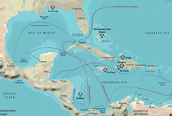 Vamos a empezar el día con esta curiosa e interesante imagen. Es un mapa del Caribe donde se detallan las rutas principales de los galeones españoles desde América a España,l os puertos mas importantes y los principales santuarios piratas en la zona como por ejemplo Tortuga, Port Royal, Providence, Nassau, etc, que puede que os suenen de películas o libros.