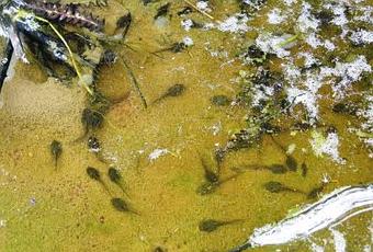 Los renacuajos de sapillo pintojo son muy pequeños, pudiendo alcanzar una longitud de 25 a 35 mm, y presentan unas pintas muy características. Su desarrollo es variable, entre uno y dos meses, y se encuentran fundamentalmente en primavera, y si la temporada es favorable también en verano, ya que los sapillos se reproducen entre dos y tres veces al año. En Asturias se encuentran sobre todo por debajo de los 600 m, altitud a la cual localicé estos renacuajos en un pequeño curso de agua en Salas.