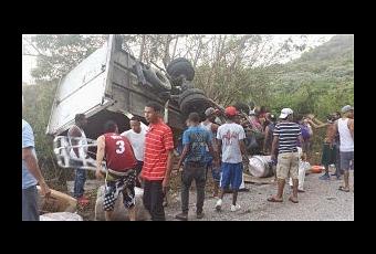 La Cienaga. RD; Una multitud saqueo un camión de envío de la compañía Embarque, tras un vuelco en la curva bajando el puente Coronel, en el Municipio de la Ciénega.
