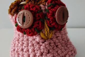 Buho o más bien buhita rosa, de ojos rosas ultima de la colección. Espero que os hayan gustado estos buhitos saquitos. Abajo...fotos de todos :)