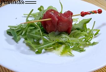 Así tal cual es delicioso pero será más individualizado si se añaden los ingredientes que a cada uno mas guste.En mi caso he puesto queso crema con almendras picadas y parmesano. A otros le he agregado nueces picadas.El caso es que esta carne así en carpaccio me resulta muy sabrosa y cuando vi como lo presentaba Susana, a la cual le hacemos el homenaje este mes en HomenajeBlog no me pude resistir.Podeis ver como lo presenta en su instagram foodphotografergirl.Ella le agrega rúcula en la base, como cama, pero también queda genial en el relleno.Si queréis ver mas recetas de este homenaje entrad AQUÍ.