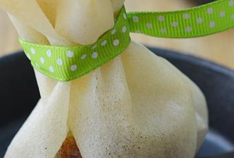 Cerramos nuestros saquitos hacia arriba y los atamos con cuerda especial para cocinar. Los colocamos en una bandeja de horno.