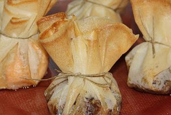 SAQUITOS DE PASTA BRICK RELLENOS DE VERDURAS Y GAMBAS