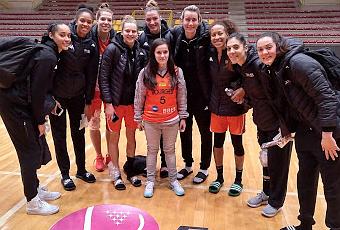 Sara Mallén, en el centro, con la plantilla del Bourges Basket. Foto: Bourges Basket.