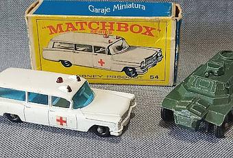 Los lectores, de hace años, del “Garaje Miniatura” saben, por las notas sabatinas, que he conservado varios Matchbox desde mi infancia. Algunas de esas piezas comparten el mismo número. Hoy les tocó al Saracen Personnel Carrier y a la S & S Cadillac Ambulance.