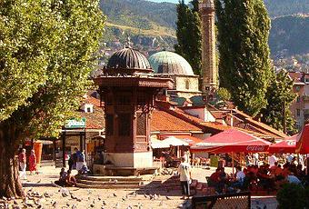 Tus pasos te llevarán a plaza de la paloma, la marca registrada de Sarajevo. Decenas de palomas pasean mordisqueando la comida de las manitas de los niños que se sientan durante horas mirándolas. En el centro de la plaza domina el Sebil, la fuente de madera de estilo otomano construida en 1753, fue trasladada a su ubicación actual en 1891 y es una de las atracciones más conocidas de la ciudad. La leyenda local dice que si bebes agua de la fuente, seguramente regresarás a Sarajevo. En las calles de Baškarsija encontrarás la Gran Mezquita, un punto de referencia y lugar de oración para los musulmanes de Sarajevo y los musulmanes de la zona.
