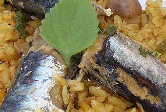 Ponemos el tomate, la cúrcuma, un par de vueltas y echamos el arroz que dejamos sofreír un par de minutos y echamos el caldo, el orégano y rectificamos de sal. Movemos y cuando seque bajamos el fuego, tapamos y dejamos cocinar 11-12 minutos. Retiramos del fuego, volteamos el arroz y dejamos descansar 5 minutos a medio tapar. Pasado el tiempo, servimos disponiendo las sardinas reservadas en cada plato