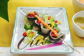 Con los pimientos bien picaditos podemos enrollar las sardinas y con un palito largo presentarlas a modo de brocheta.
