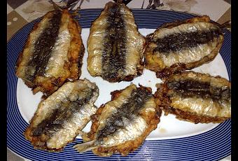 En un plato, batimos los huevos, echamos el perejil el jamón muy picado, la cebolla y a continuación se le añade pan rallado, hasta tener una masa como la de los panecillos, una vez tengamos la masa preparada vamos cogiendo las sardinas una por una y se van rellenando y se tapan con otra sardina, así sucesivamente, después las cogemos con cuidado y las pasamos por harina. En una sartén o freidora con abundante aceite se van friendo, se escurren en papel de cocina y se sirven en una fuente. Es un aperitivo rico en vitaminas. Buen provecho......