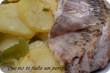 Cuando estén casi tiernas, saca el pescado y ponlas encima del pescado. Vuelve a introducir el pescado en el horno hasta que terminen de hacerse. Las patatas también tomarán el sabor del pescado y del limón y el resultado será extraordinario.