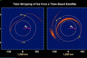 La simulación muestra que las fuerzas de marea de Saturno podrían haber desprendido hielo de la corteza de una luna del tamaño de Titán para formar los anillos del planeta y sus lunas interiores. Posteriormente la luna cayó al planeta