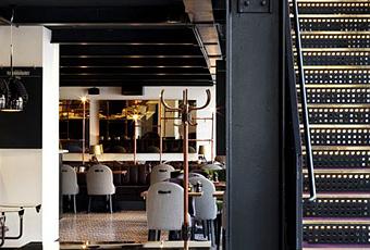 La zona de restaurante y cafetería, se dedica e inspira en los salones mas clásicos de Brooklyn. Dorados, suelos hidráulicos, y tapizados sobrios. Las mesas con pie de forja para permanecer casi estáticas y los bancos corridos con piel. Un look al que estamos poco acostumbrados en los países mas nórdicos, o no?