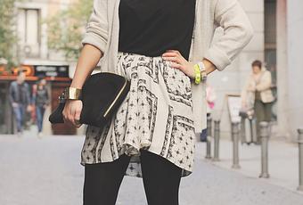Pulsera/Necklace:Forever 21 Aunque creo que la tendencia del estampado pañuelo "horroriza" o "encanta" me quedo en un punto medio, optando por sus versiones más sencillas y elegantes como la falda de Zara en negro y crudo que os enseño en el look de hoy. Tengo ganas de darle un aire más veraniego y combinarla con colores llamativos pero de momento os dejo con una propuesta fácil que consigue destacar por los accesorios en tonos fluor. Espero que os guste :)