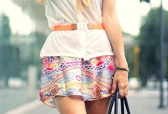 Hola! Hoy os enseño mi primer outfit con los dos accesorios nuevos que os enseñé en el pasado post. Tengo muchos looks en mente con estos zapatos y este bolso juntos. Aunque, por supuesto, por separado también darán mucho juego!La falda, también nueva, tiene un bonito estampado tipo pañuelo y me gustó la idea de darle un pequeño toque "peplum" al look con este cinturón en tono tangerine flúor que tiene el detalle de pinchos dorados en el cierre. Ya desde la temporada pasada estoy obsesionada con todo lo que lleve tachuelas y pinchos...