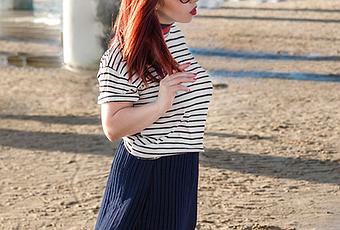 El plan era, además de lo anterior, hacer también un poco de shopping por nuestras tiendas preferidas, así que el sábado aposté por este look casual con un toque navy que me encajaba perfecto para los dos planes. Falda larga, camisa a rallas, sandalias romanas y para dar un toque especial, me apetecía apostar por la nueva tendencia del pañuelo al cuello, que la verdad, sabía que me iba enganchar desde el primer momento.