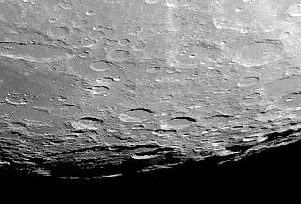 En el terminador podemos ver como los primeros rayos de Sol empiezan a descubrir a Bailly, el mayor cráter del lado visible de la Luna con un diámetro de 303 km. Es muy antiguo, con un suelo desgastado que no ha sido inundado por lava a diferencia de Schiller. Comparad ambos para ver las diferencias. Este es muy irregular, cubierto de crestas y cráteres.