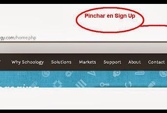 En el intento de haceros el trabajo más cómodo y que el uso de las TIC fuera verdaderamente efectivo he estado buscando aplicaciones que pudieran sernos útiles tanto a vosotros como a mí ...y me he encontrado con Schoology.Me ha parecido una herramienta muy atractiva (hay muchos espacios de este tipo donde ver las tareas que se tienen, tener y compartir documentos, hacer grupos, trabajos compartidos y colaborativos...que en vuestro caso, os vienen muy bien a la hora de hacerlos cuando no sois del mismo pueblo ...como Edmodo, por ejemplo...).Como veo que se está "eternizando "lo de los correos , mandaré el código de acceso a los que me lo han mandado y empezaré con ellos esta "nueva aventura", tendrán acceso a información "privilegiada" y con antelación...para entrega de trabajos, trucos, apuntes...dudas...Tiene buena pinta ¿verdad?Pues os voy a explicar cómo funciona...A cada alumno, tanto de 1º como de 3º que me haya mandado el correo , le mandaré el código de acceso a su curso...Imaginemos que fuera "Qma-zx2qrf" el código para entrar en 1º A...Lo primero que tendríais que hacer es buscar en vuestro navegador "Schoology"... y nos aparece la siguiente página: