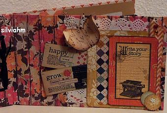 El sábado estuvimos en "Vilma Stoned" en un nuevo curso de scrapbooking. Empezamos a las 10:30 haciendo desce cero este álbum en el que trato de recoger distintas técnicas. No se trata de hacer "este álbum", sino que las chicas aprendan distintas formas de trabajar los papeles para poder hacer luego muchos más proyectos. Una vez lo tuvimos encuadernado, nos dedicamos a decorarlo. utilizando tintas sellos, troqueles, cada una a su manera. A cada una de ellas les preparé un kit con troqueles, cintas, tags... para que puderan terminar de decorarlo en casa con calma Una vez más, el momento sellos fue el preferido. !Cómo nos gustan a todas!Para casi todas fue su primer contacto con el scrap y ya están enganchadas.Creo que es una de las artesanías más creativas y personales.Se nos pasó la mañana volando y cerca de las 15:00 nos fuimos a casa con nuestro álbum.Muchas gracias a las dos Elenas, las dos Lourdes, Mariló, Inda y Danae, fuistéis unas alumnas excelentes.Hasta dentro de unos dias.
