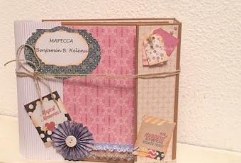 La mamá de Elena se puso en contacto conmigo: Quería un álbum para su hija, gimnasta, donde recoger todas las fotos de su actividad, recortes de periódico...El modelo elegido: Encuadernación de espina, formato 22x22, con 8 hojas interiores y mini álbum en el interior.
