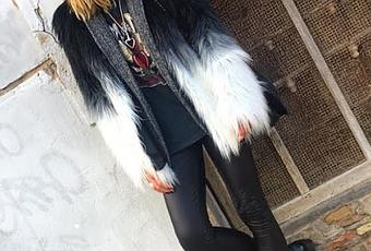 lOOK .. Abrigo Peluchin SHEIN ( más AQUÍ , AQUÍ , AQUÍ , AQUÍ ) Blazer Zara , Camiseta Rock Stradivarius, Leggins Pieces ( más , AQUÍ, AQUÍ ) Bolos Zara , Colgante Gucci , Gafas Ray Ban Aviator