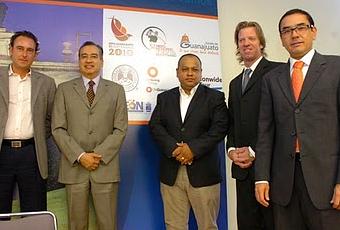 Presidium, de izquierda a derecha: Lic. Memo Velasco, El Bosque Country Club, Ing. Sergio Rodríguez, Secretario de Desarrollo Turístico del Gobierno de Guanajuato, Lic. Manuel López Santamaría, Director de Turismo Municipal de León, Fernando Horgan, Presidente de On Going Marketing y el Lic. Alberto Kaneda, Presidente de la P.G.A.M. y representante de la Federación Mexicana de Golf.