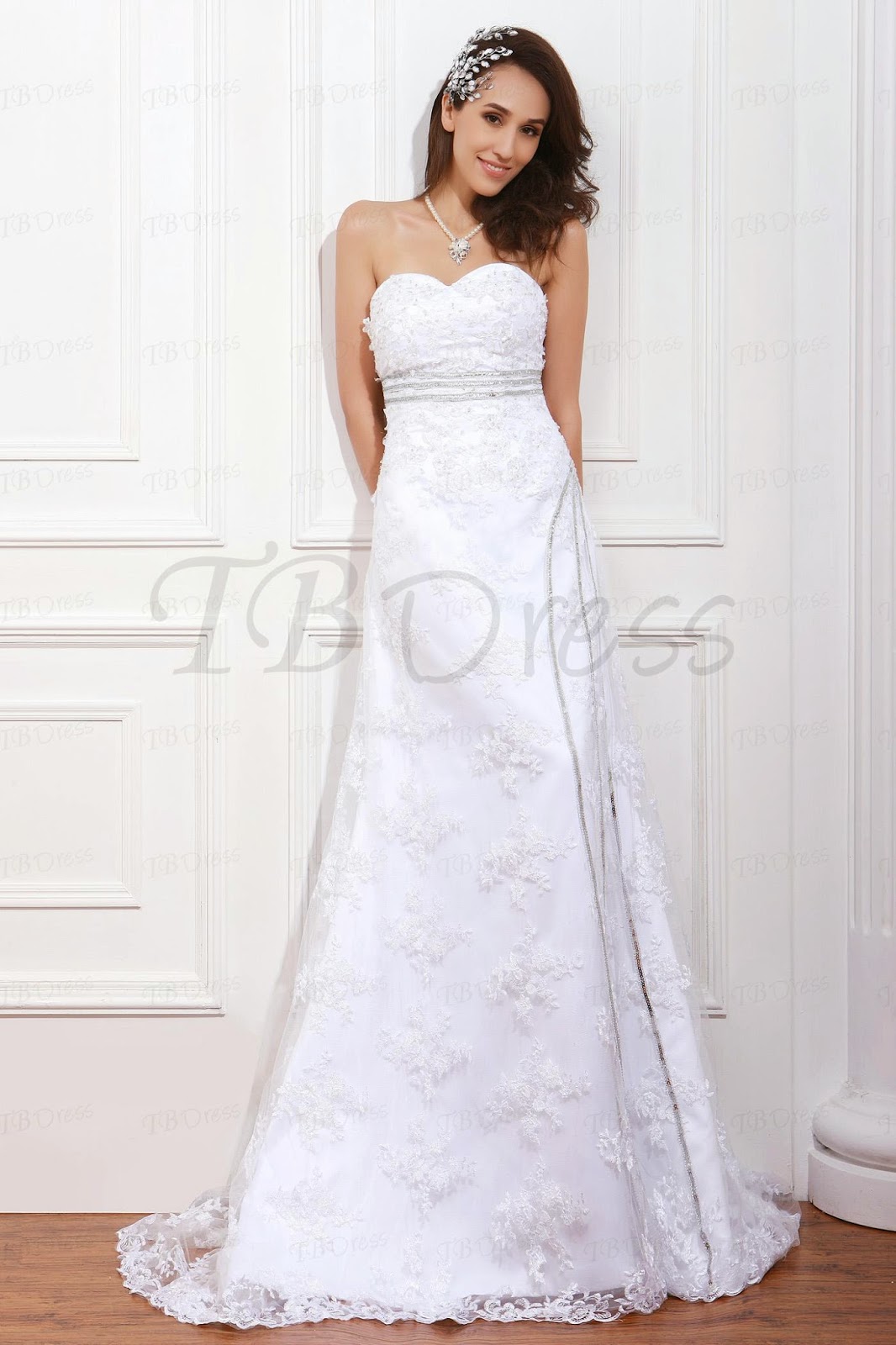 Y último es un vestido entero de encaje con escote de corazón que me parece muy romántico y elegante. http://www.tbdress.com/product/Gorgeous-A-Line-Strapless-Sleeveless-Appliques-Tulle-Court-Train-Renatas-Wedding-Dress-9647035.html