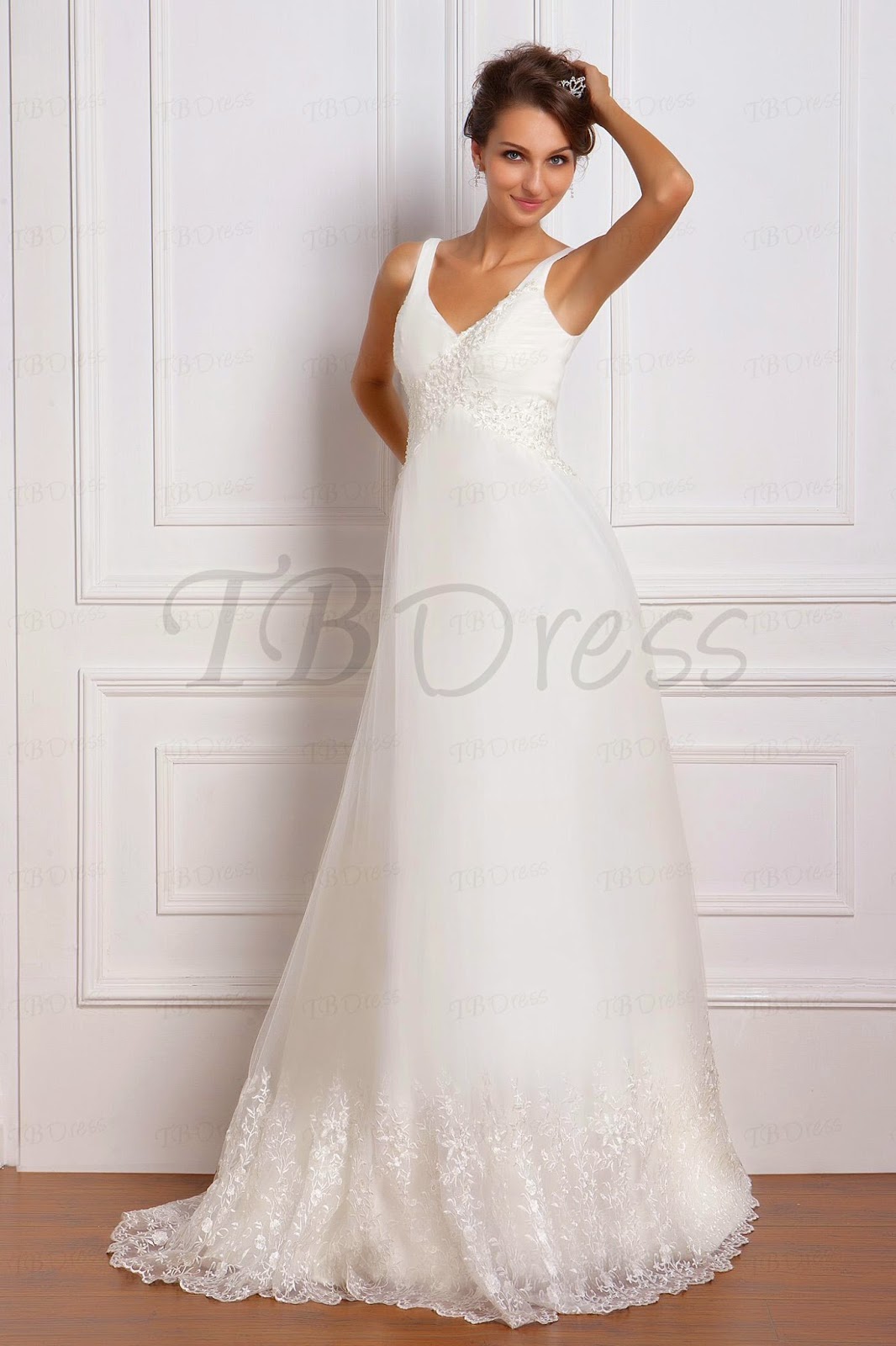 El tercero es un vestido de novia con un bordado espectacular, escote en pico y anchos tirantes. http://www.tbdress.com/product/Spectacular-Empire-V-Neck-Floor-Length-Brushing-Lace-Trimmed-Miriamas-Wedding-Dress-9652881.html