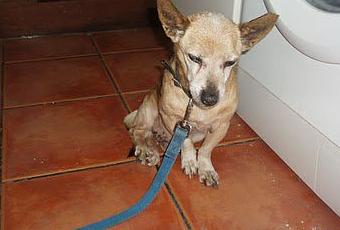 No ve ni oye, encontrado empapado una mañana de lluvia. Parece evidente, que además de la crueldad de abandonarlo en su estado, no le han cuidado mucho durante el resto de su vida. Qué tristeza!!!